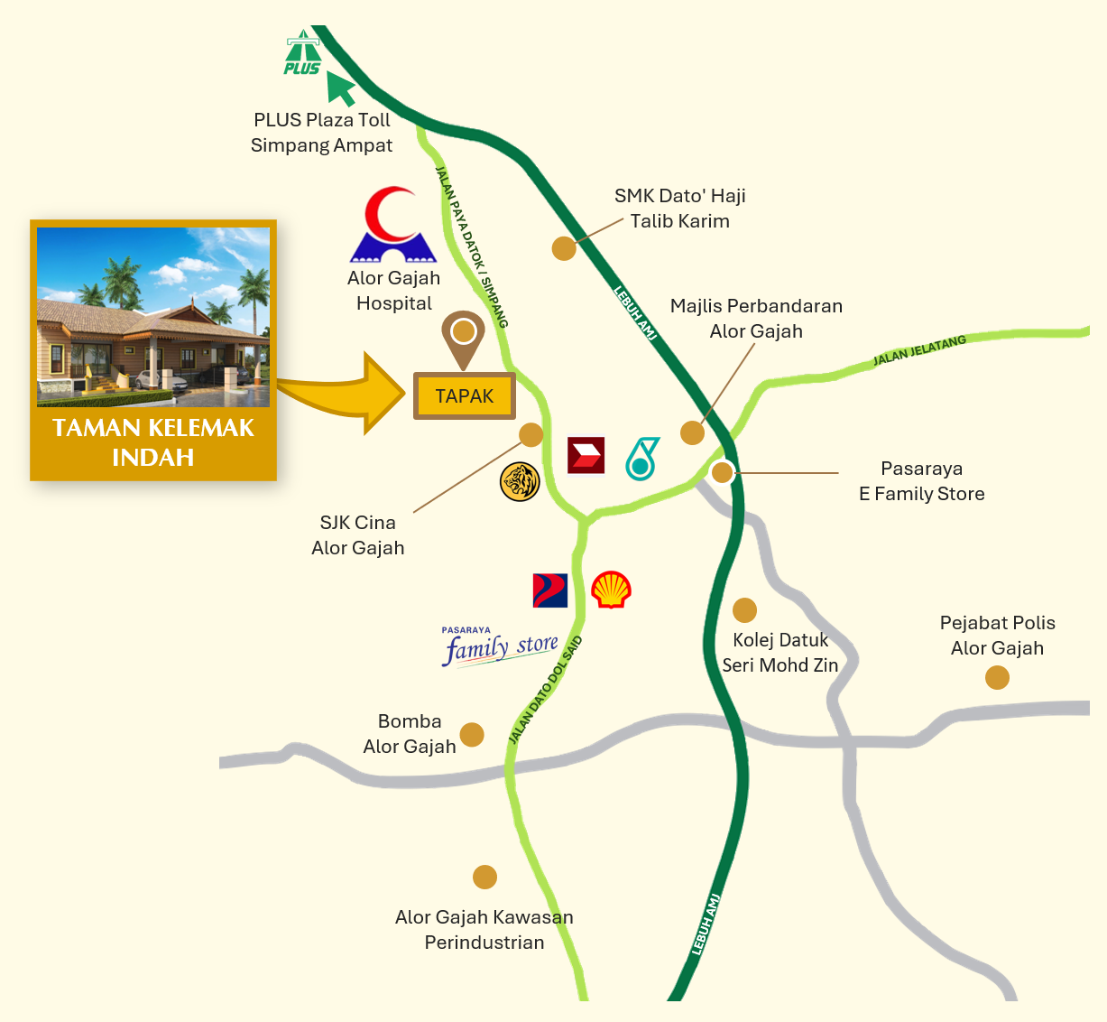 Taman Kelemak Indah menawarkan gaya hidup penuh elegan — berhampiran sekolah, masjid, kedai dan hospital, serta akses mudah ke lebuh raya AMJ dan PLUS.